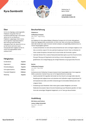 • Passende Lebenslaufvorlage bei CVMaker wählen, Kopfzeile einmal sauber einrichten, dann überall gleich lassen.
